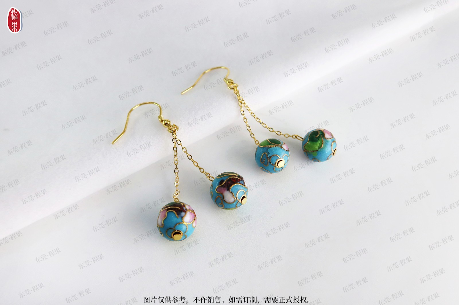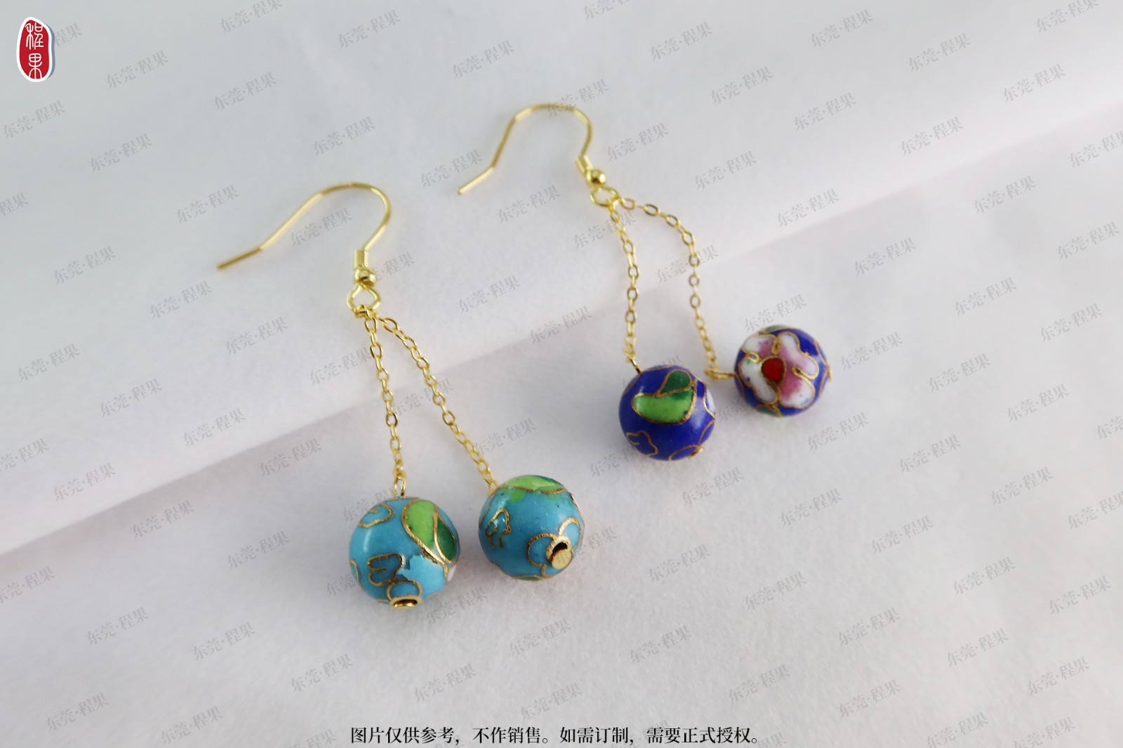 5景泰蓝珠镀金耳钉