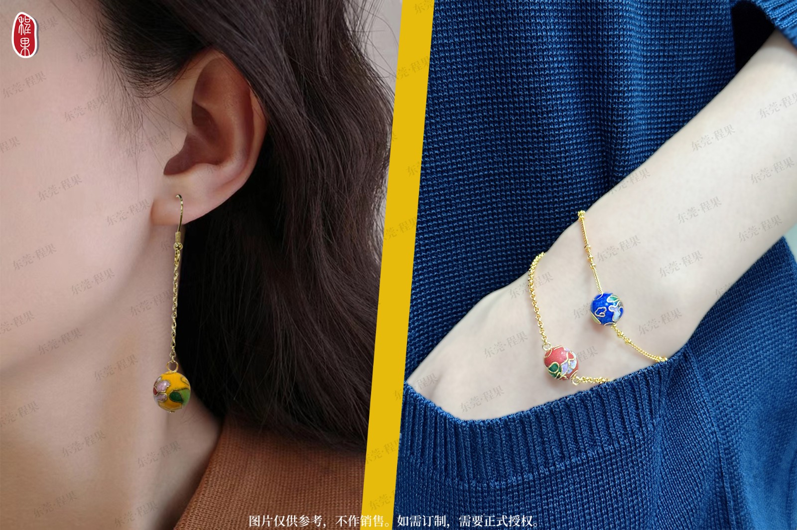 3景泰蓝珠镀金手链